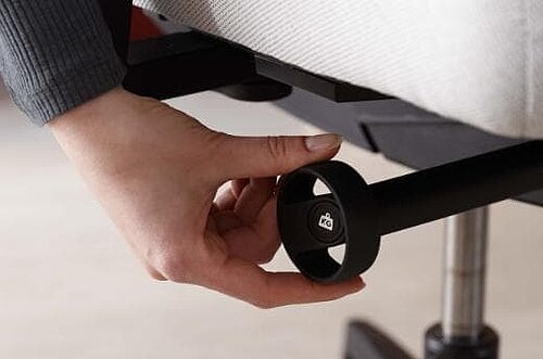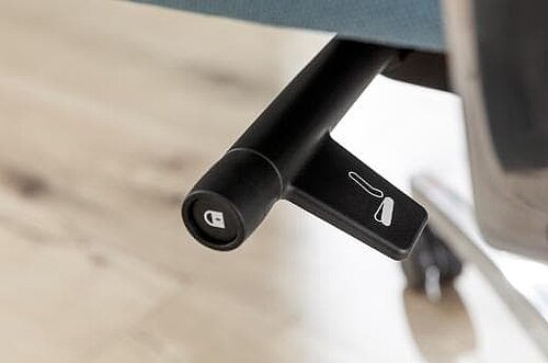 Folgt Ihrer Dynamik: Den Gegendruck der Rückenlehne können Sie am herausziehbaren Handrad schnell und einfach z. B. so einstellen, dass Ihr Oberkörper beim Aufrichten sanft unterstützt, aber nicht nach vorn gedrückt wird.