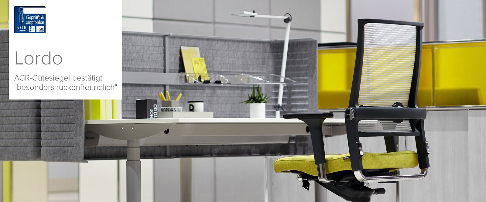 Nur Produkte, die ihre rückengerechte Qualität unabhängig nachweisen, erhalten das Siegel. Dauphin war 2012 der erste Hersteller mit dem AGR-Gütesiegel für industrielle Arbeitsstühle – zahlreiche weitere Modelle folgten. Seit 2014 ist auch eine Reihe an Bürodrehstühlen ausgezeichnet.