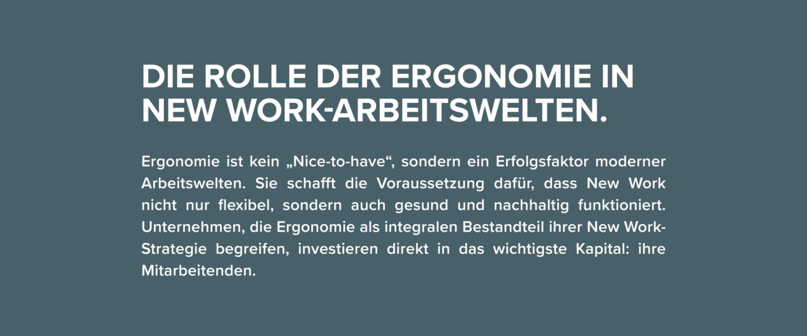 Feste Arbeitsplätze bleiben auch in New Work Arbeitsumgebungen wichtig – für spezialisierte Aufgaben und Vertraulichkeit. Individuelle Einstellungen sichern gesunde, körpergerechte Haltung und langfristigen Komfort in der ME-Zone.
