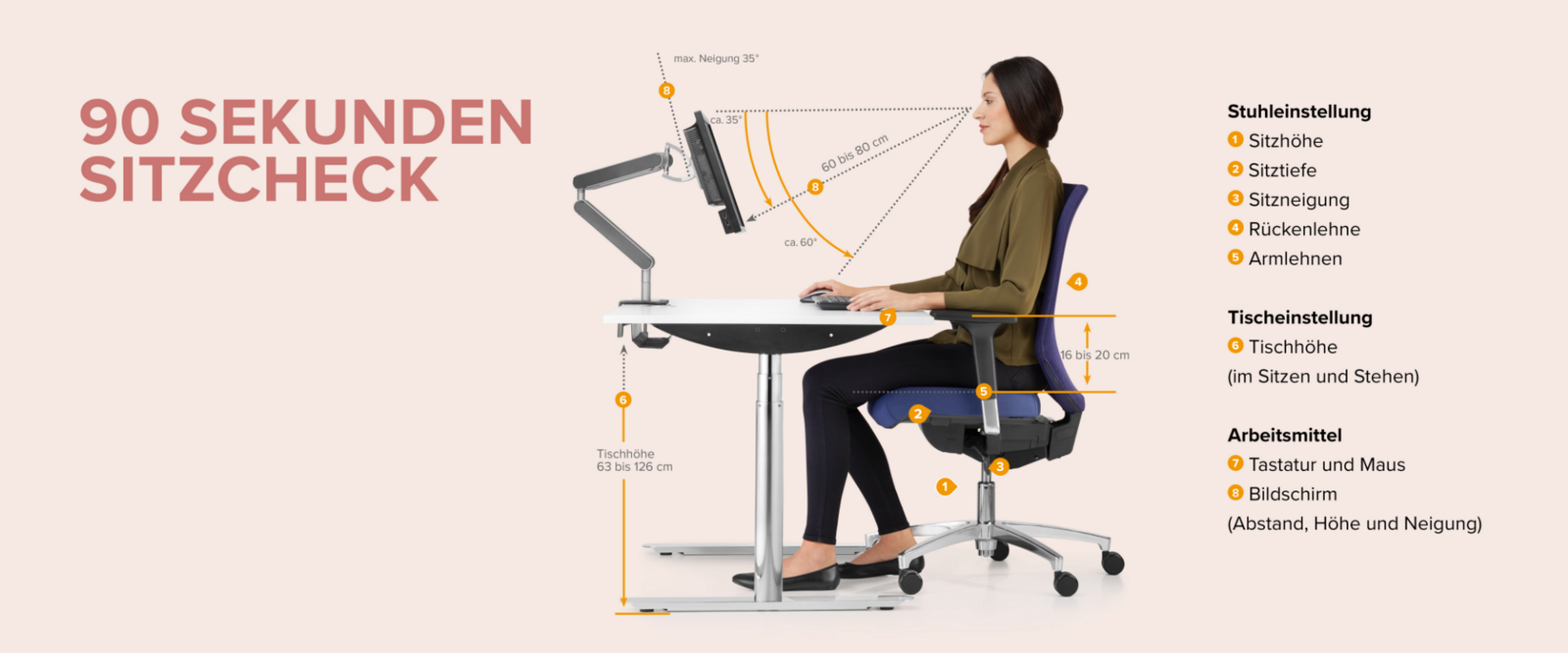 Starten Sie mit unserem Selbst-Check – einfach, schnell und informativ. Ermitteln Sie in wenigen Schritten, wie gut Ihr Arbeitsplatz bereits auf Ihre ergonomischen Bedürfnisse abgestimmt ist.