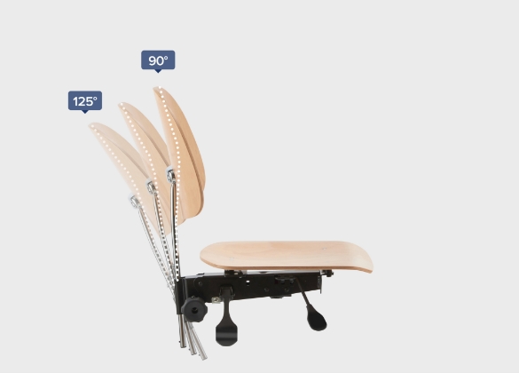 - Sitzschale folgt permanent den Bewegungen des Oberkörpers bei einem konstant geöffneten Sitzwinkel von 95°.