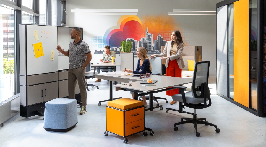 Dabei im Zentrum: Das Office. Ja. Genau. Richtig gehört. Wir glauben zwar fest daran, dass hybrides Arbeiten gekommen ist, um zu bleiben. Aber wir sind gerade deswegen der Überzeugung, dass das Office der Zukunft als physisches Herzstück des Unternehmens mehr denn je benötigt wird.