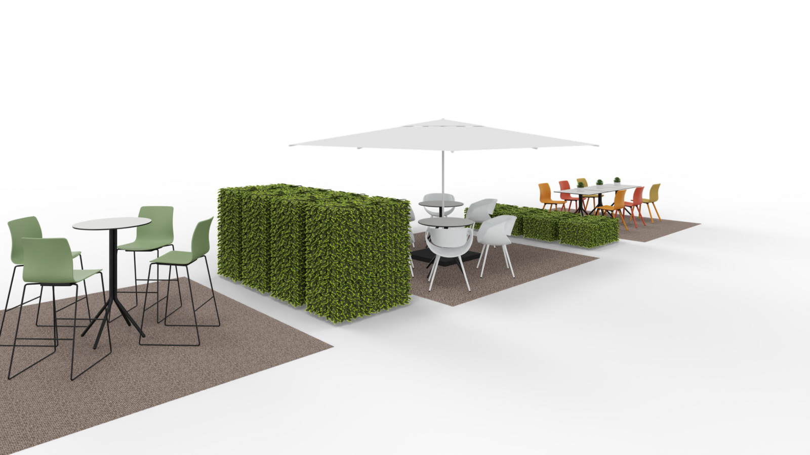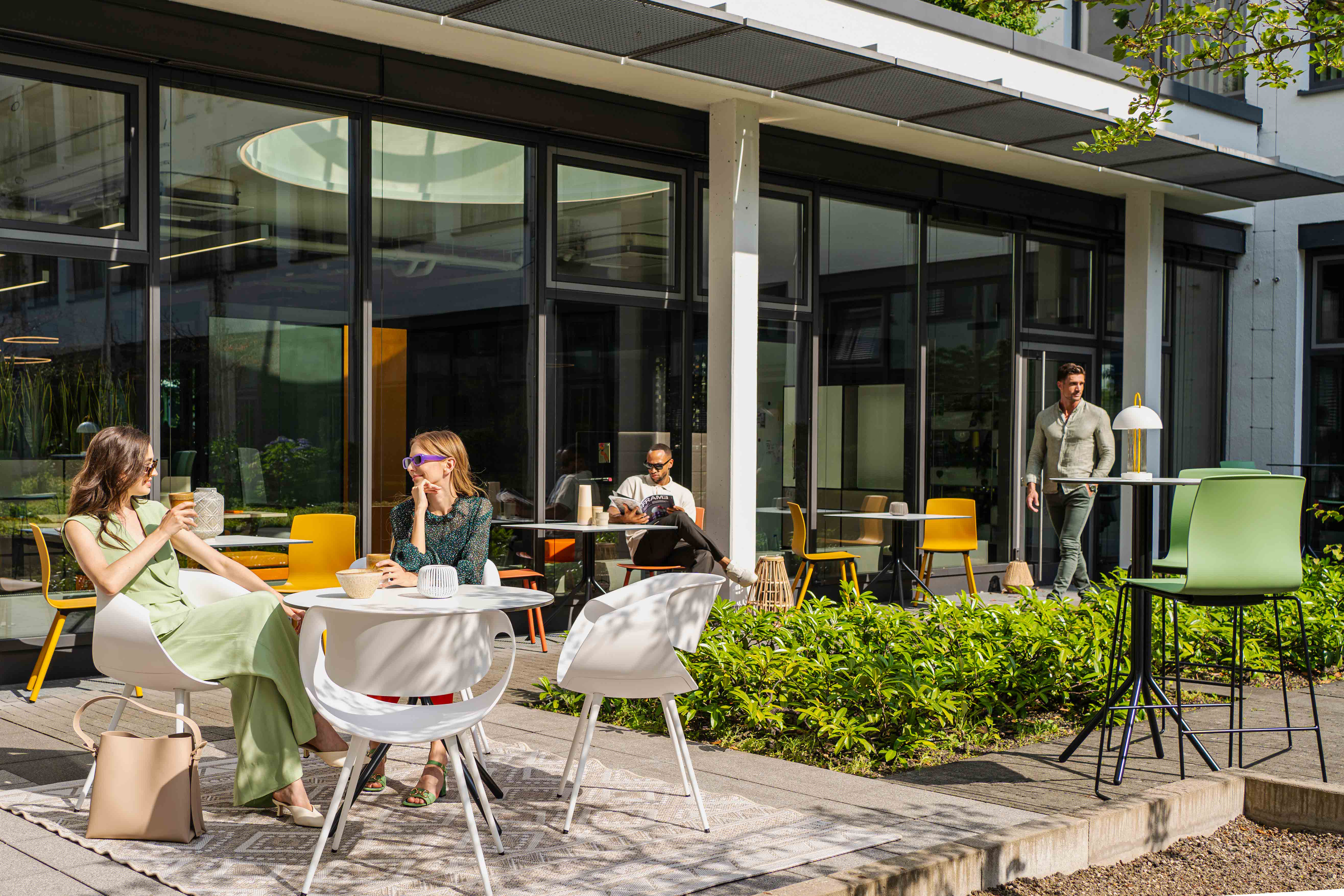 Der ins Freie verlegte Arbeitsplatz für spontanen, informellen Austausch, für kurze Meetings oder einfach nur zum Relaxen, Eis essen und Kaffee trinken.