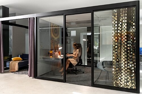 Auf über 450 m² inspirieren wir Sie mit außergewöhnlichen Raumszenarien und stylischen Details. Unser New Work-Konzept wurde bei den ICONIC AWARDS 2025 in der Kategorie INTERIOR – Workplace als Winner ausgezeichnet.