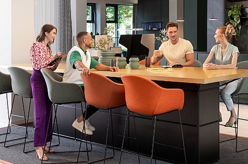 Ein belebter und beliebter Treffpunkt zum spontanen Austausch, für kurze Meetings oder einfach nur zum Relaxen und Kaffee trinken. Hier sind alle herzlich willkommen!