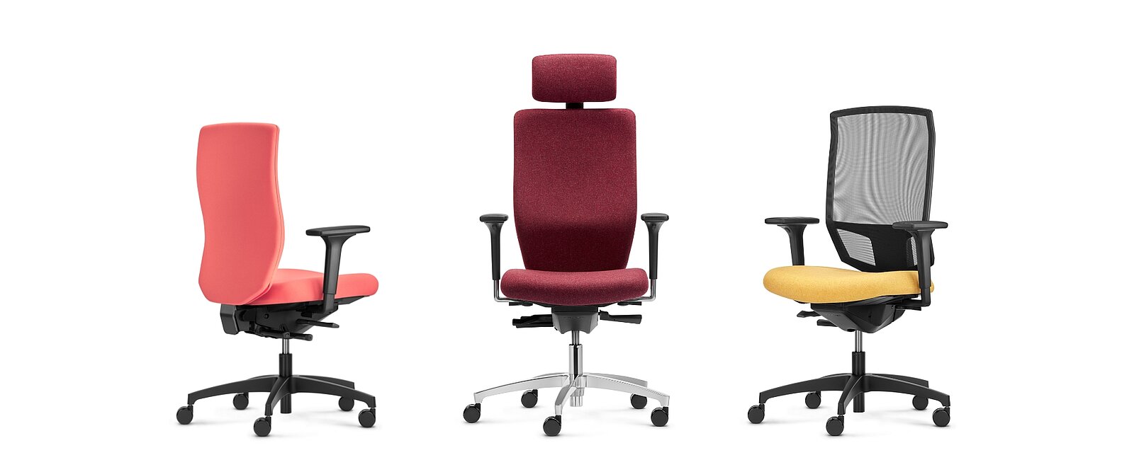 Mit bequemer Polster-, wohnlicher Vollpolster- oder luftiger Netz-Rückenlehne? Mit oder ohne Ergo-Nackenstütze? Kombinieren Sie Ihren Stilo ES nach Ihren Vorstellungen!
