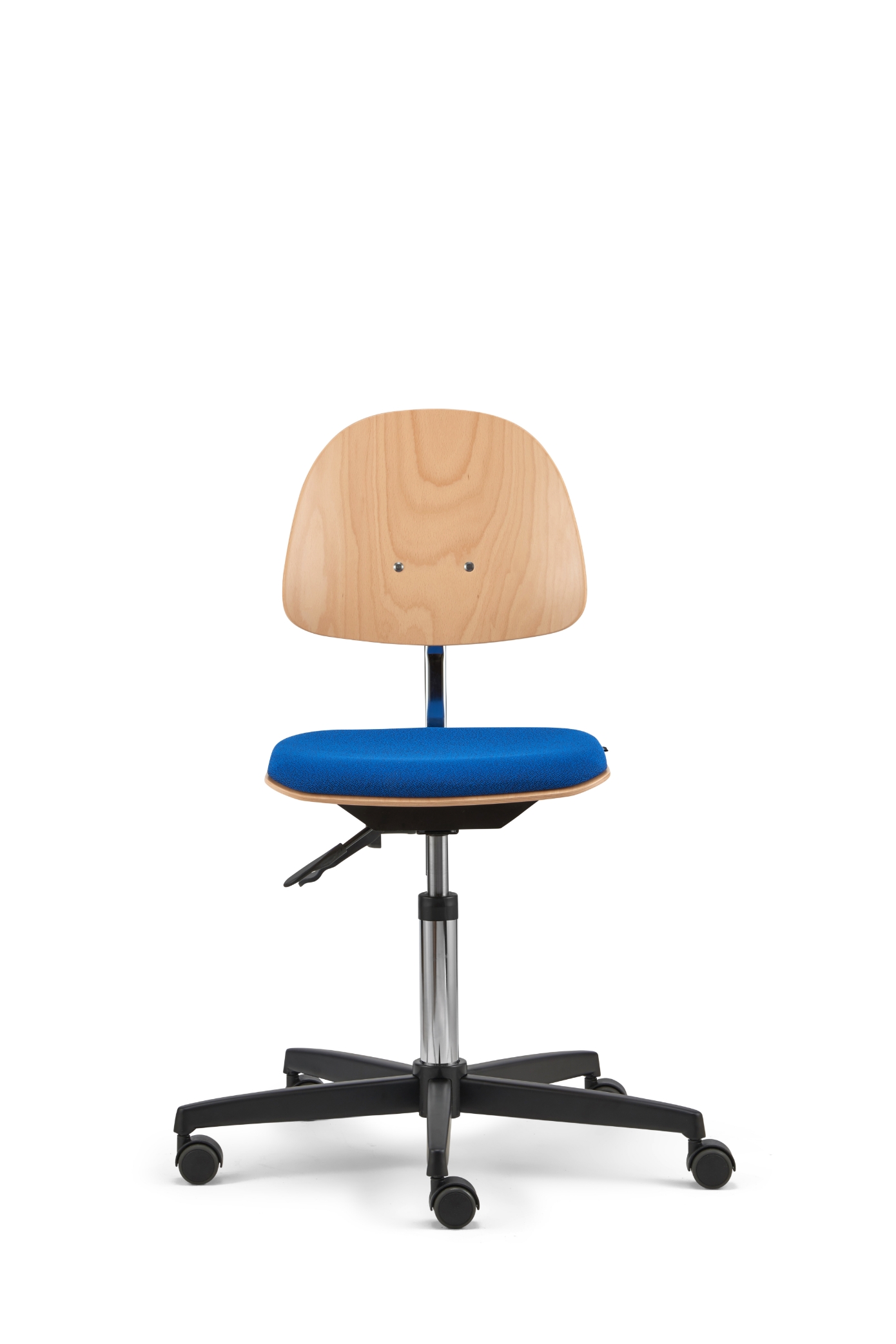 Werkstatt in Bewegung. Größtmögliche Bewegungsfreiheit im Arm- und Schulterbereich ist genauso wichtig wie eine gesunde und leistungsfördernde Sitzhaltung. Bei häufig wechselnder Arbeitshaltung muss der Stuhl flexibel reagieren. Dabei muss die Sitzhöhe nicht nur auf die Höhe des Arbeitstisches und die Größe der Mitarbeiter abgestimmt werden, sondern auch auf die Höhe des Werkstückes.