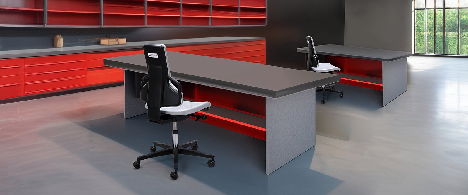 Stabilität und Standfestigkeit sind weitere wichtige Kriterien für den Arbeitsstuhl in der Produktionshalle oder in der Werkstatt. Gerade bei einer Gewichtsverlagerung nach vorn oder wenn bei der Arbeit viel Kraft aufgewendet wird, muss der Stuhl absolut sicher stehen. Außerdem ist langlebiges Material gefordert, das fliegenden Funken ebenso widersteht wie Schmieröl und Schmutz.