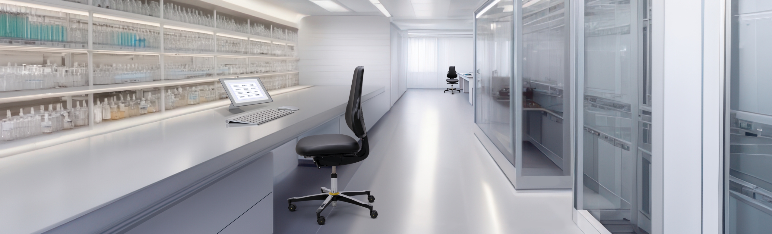 Cleanliness and functionality. Extreme care must be taken when furnishing clean-rooms. Emissions of even the smallest particles must be extremely low and the furniture must guarantee that any electrostatic charges are dissipated. With their smooth surfaces, sealed upholstery, covered mechanisms and dissipative materials, our models developed for use in clean-rooms meet all of these requirements with ease.