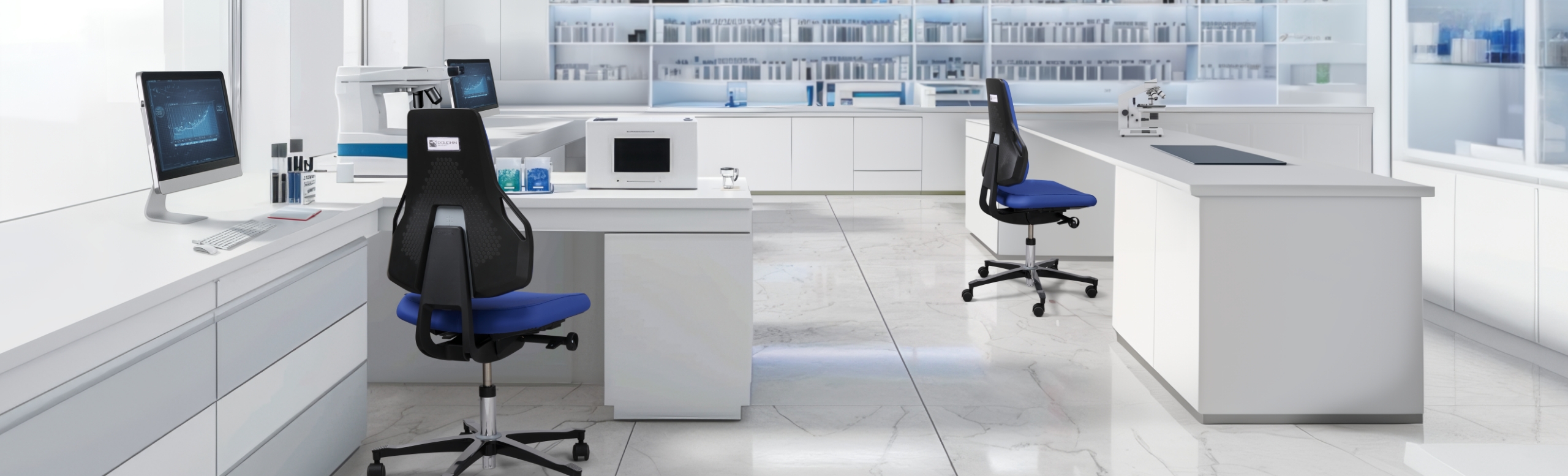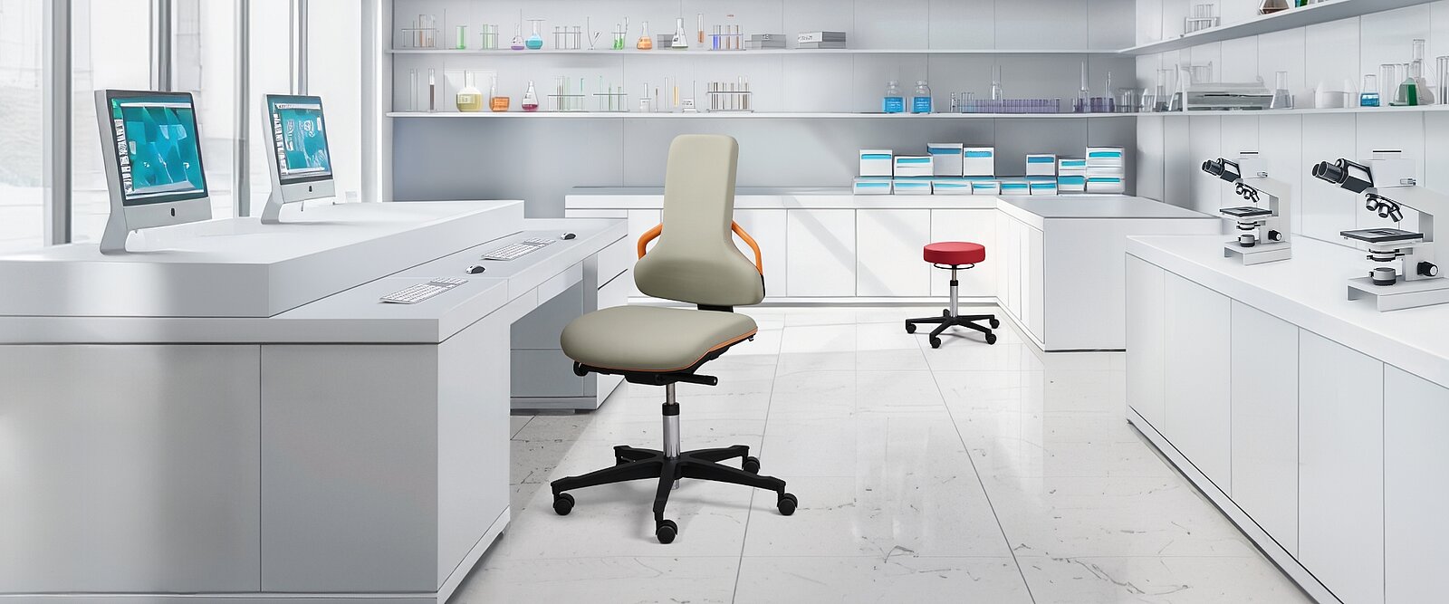 Perfect attention to detail. People who do precision, concentrated work in laboratories need to be able to relax when sitting. When a person looks into a microscope, e.g. to record the results of tests, the laboratory chair must allow an appropriate ergonomic posture and adjust to the person’s seated posture through intelligent technology. After all, in professions with a high level of responsibility, comfort when sitting and performance are particularly closely linked.