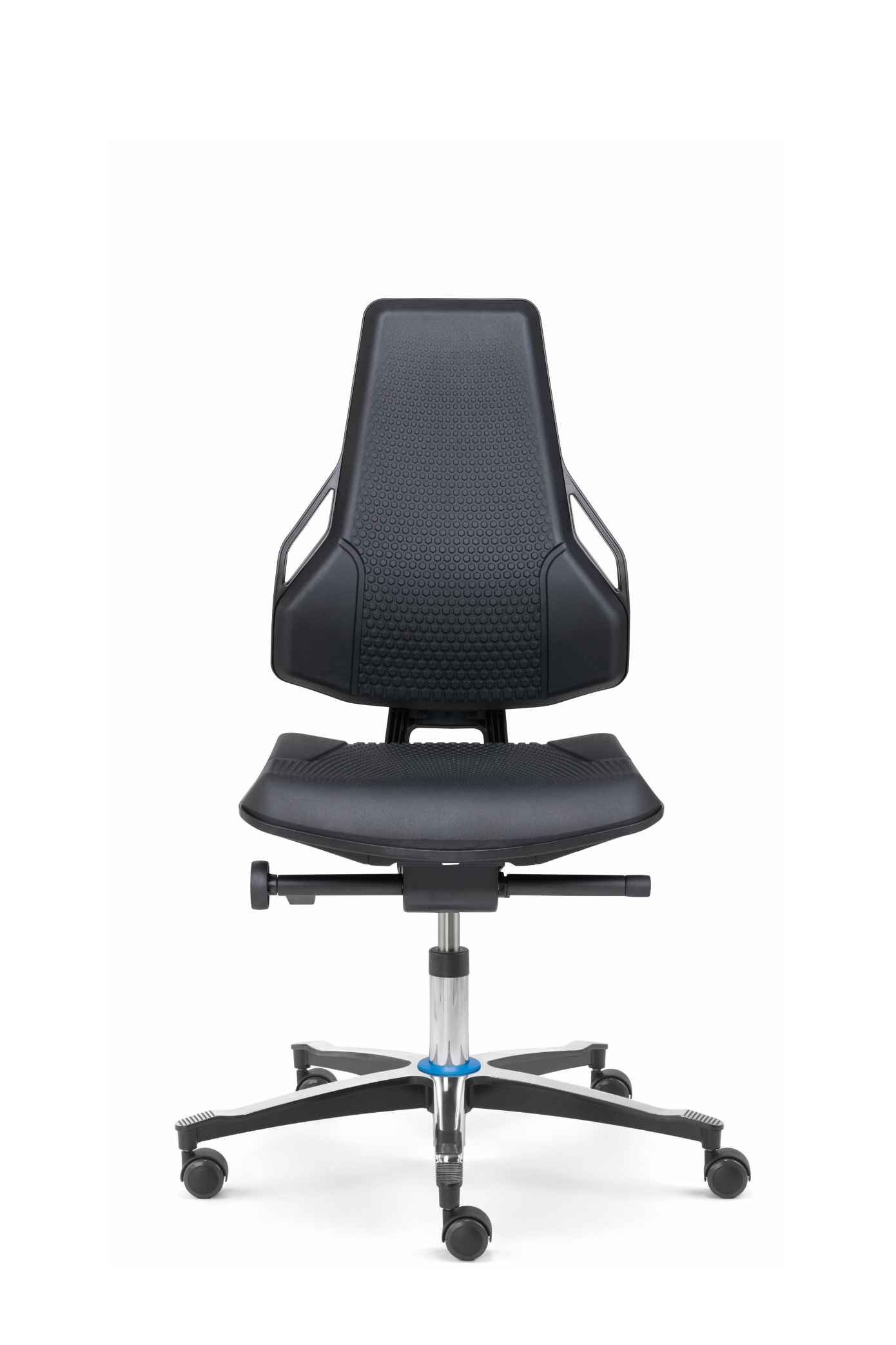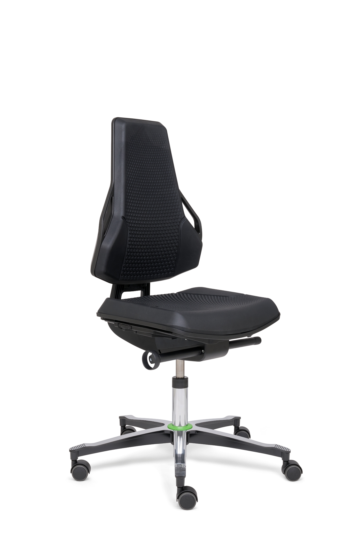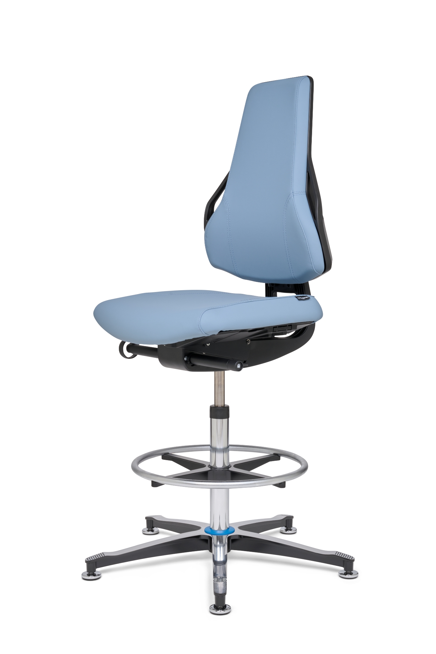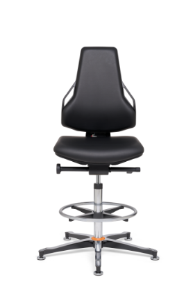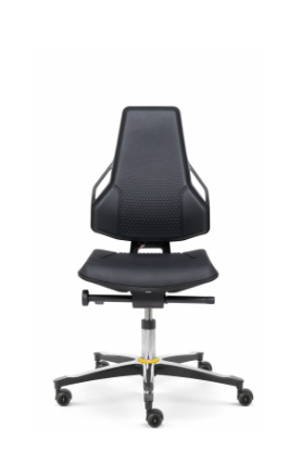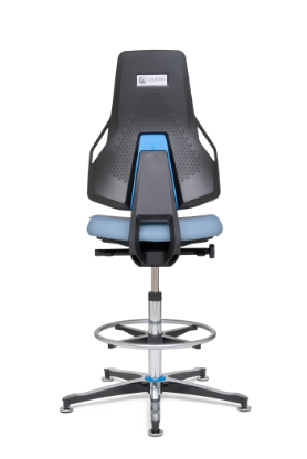 The seat and backrest upholstery are breathable, microclimate-friendly and can be equipped with the right fabric to suit the specific area of application: hard-wearing polyurethane (PU) for workshop and production areas, imitation leather for use in laboratories or clean rooms and conductive cushion materials for ESD protection zones.