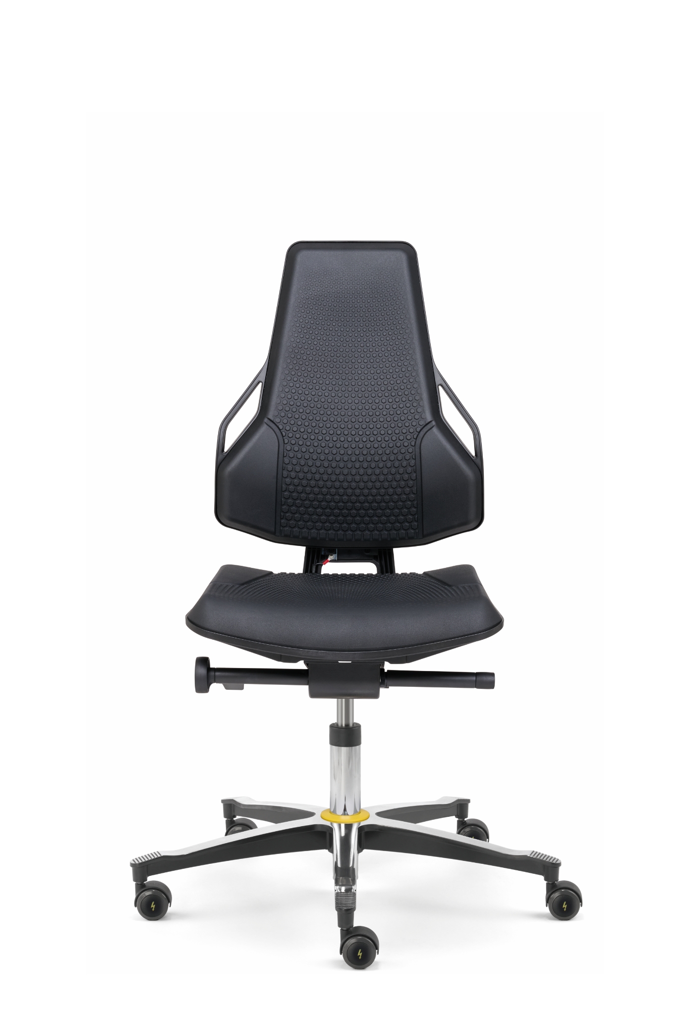 ESD chairs prevent any electrostatic charging and protect sensitive technology. Tec identity dissipates the excess energy thanks to its special, conductive features and materials. The safe and healthy way to sit.