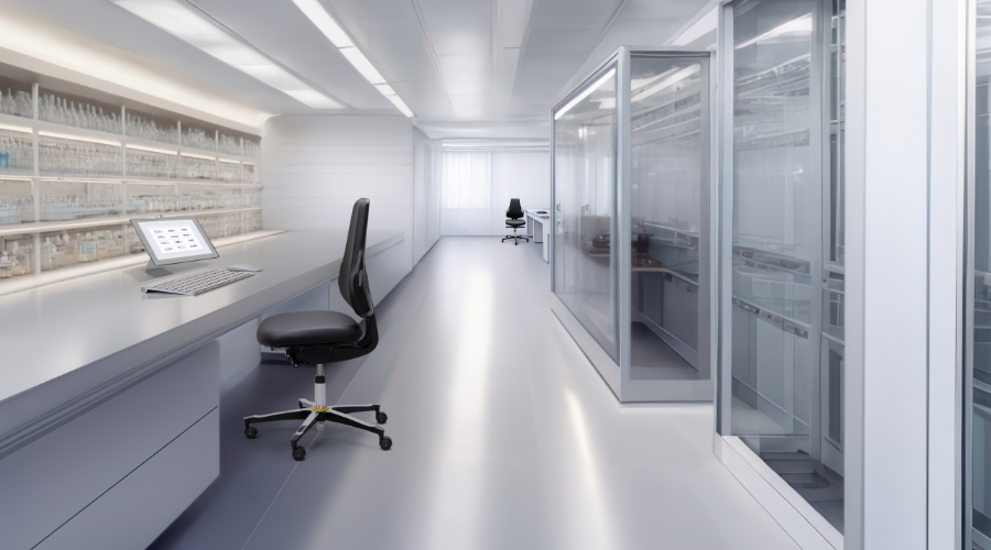 Clean room chairs combine zero particle emissions, electrostatic discharge capacity and ergonomics. Smooth surfaces, sealed cushions and concealed mechanisms satisfy the most demanding cleanliness standards for Tec identity – for safe, healthy working in a clean room.