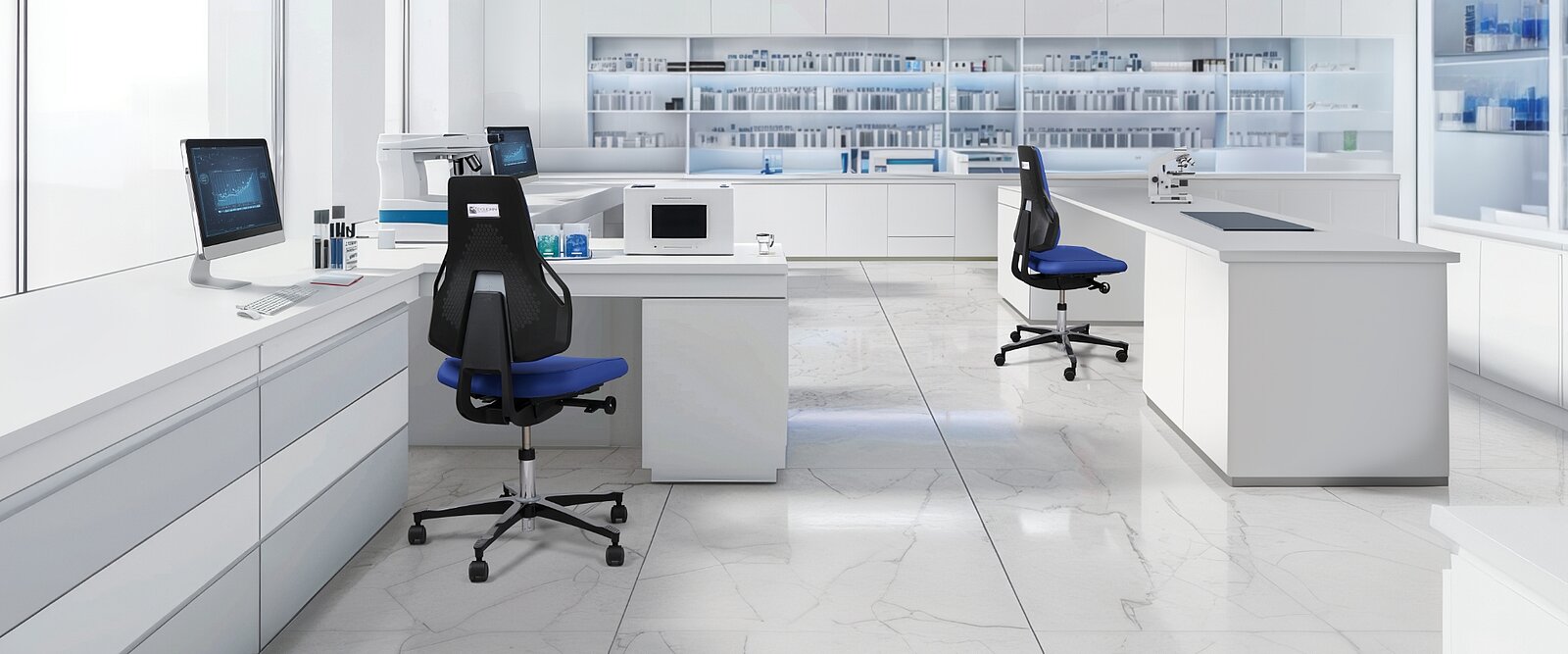 Laboratory chairs need to be ergonomic, hygienic and flexible. Tec identity supports focused working, adapts dynamically to the seated posture and promotes productivity with its back-friendly design – essential when performing delicate work.