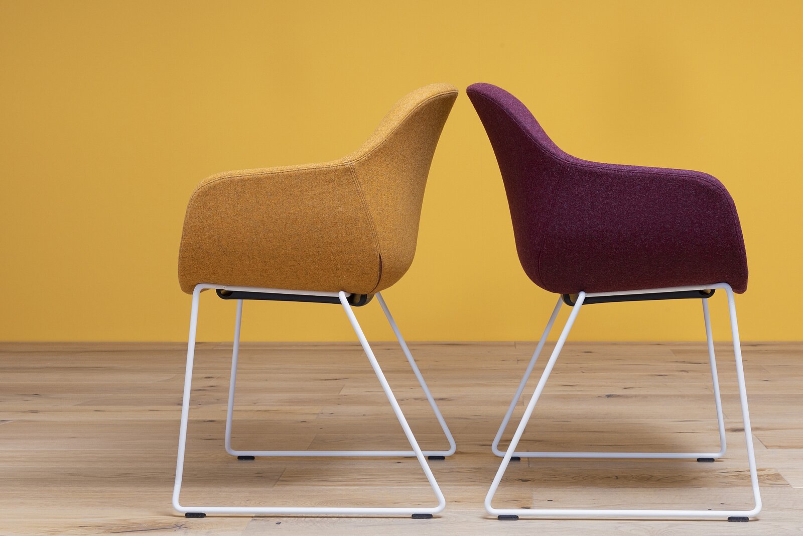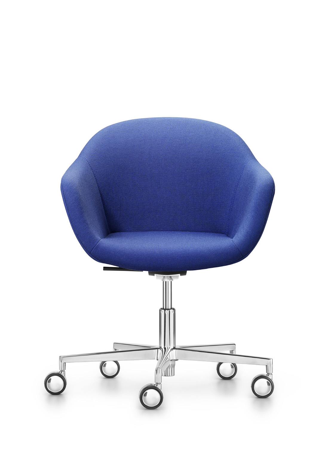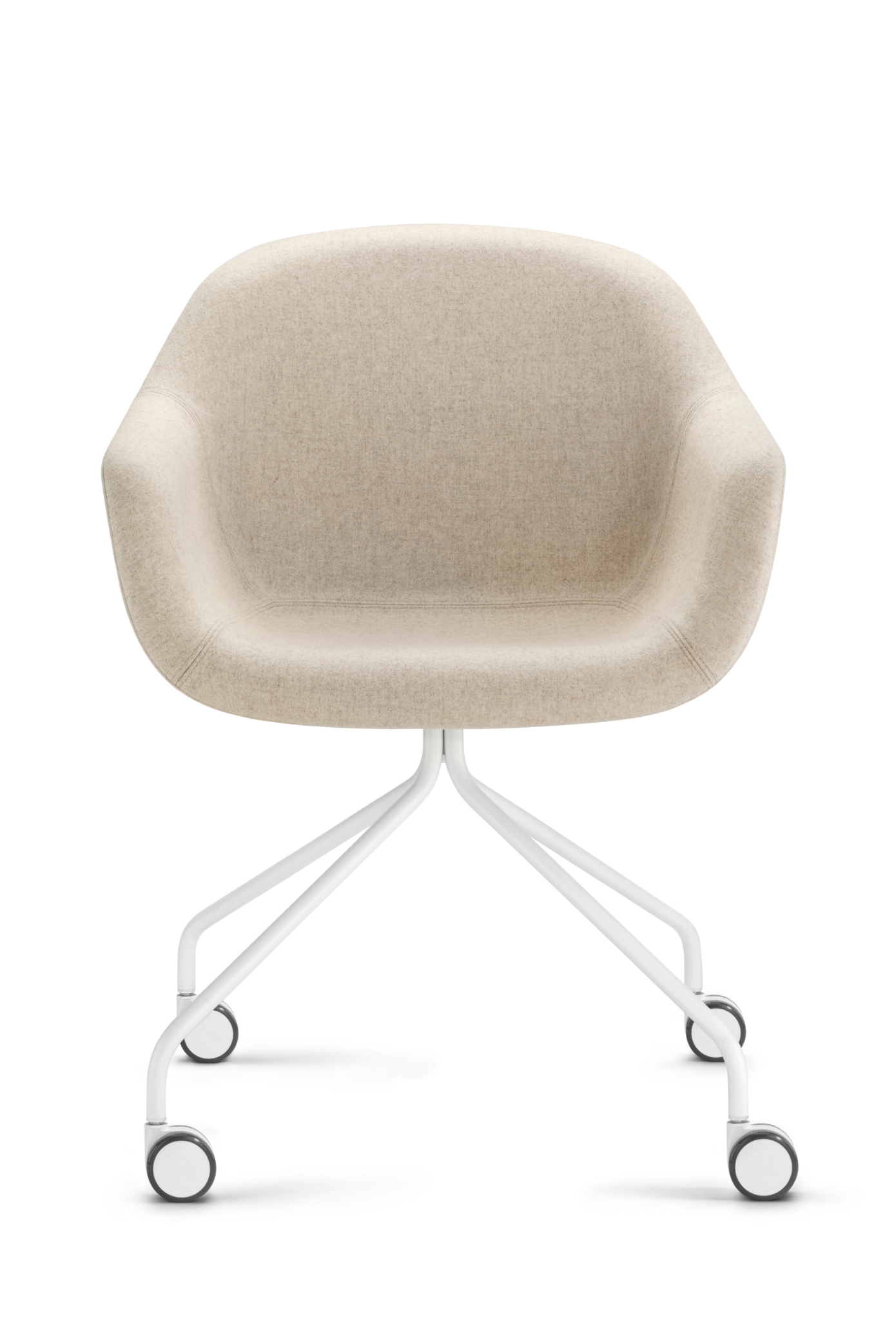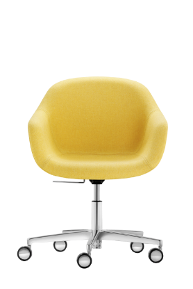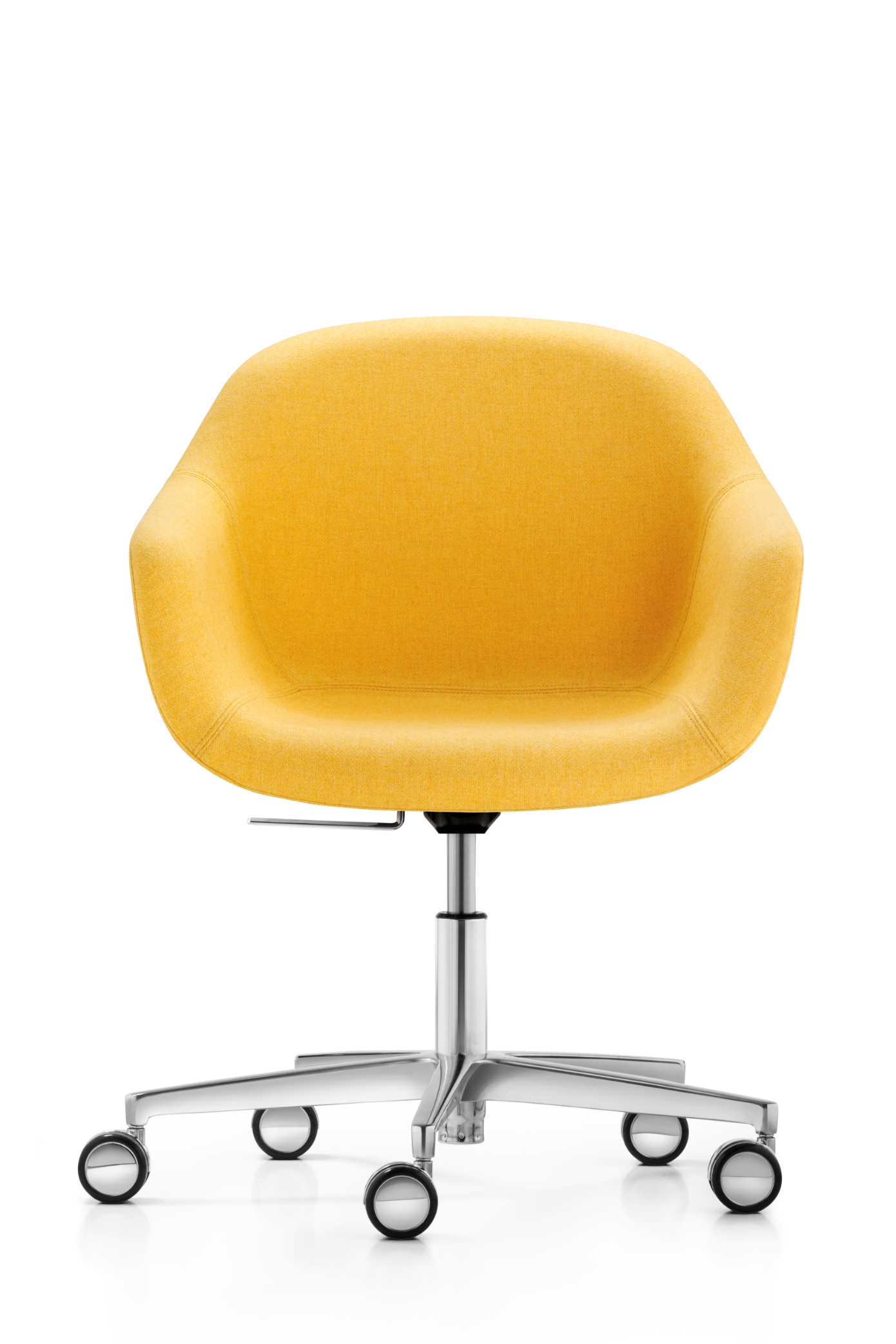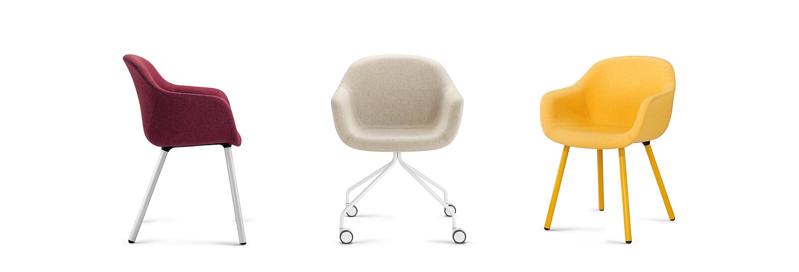 Elegant steel frame, colourful aluminum legs or better mobile on castors? Combine the different frame variants with the organically shaped, extremely comfortable fully upholstered shell!