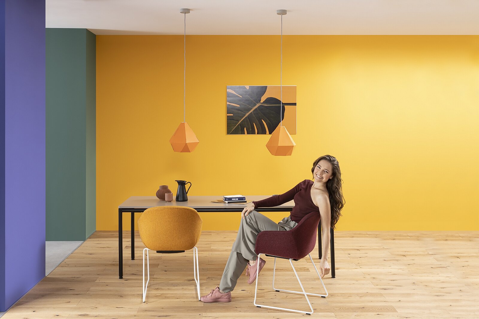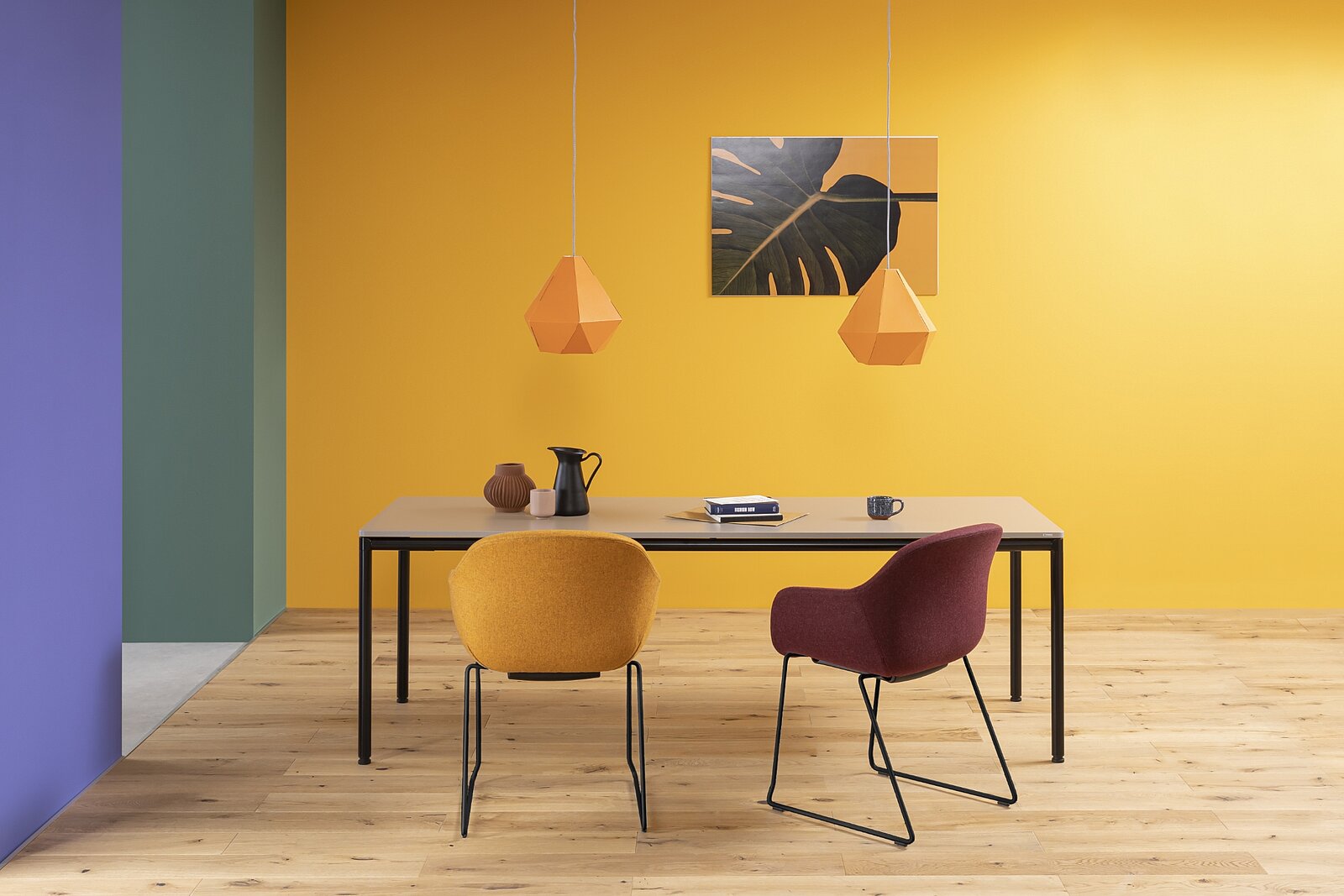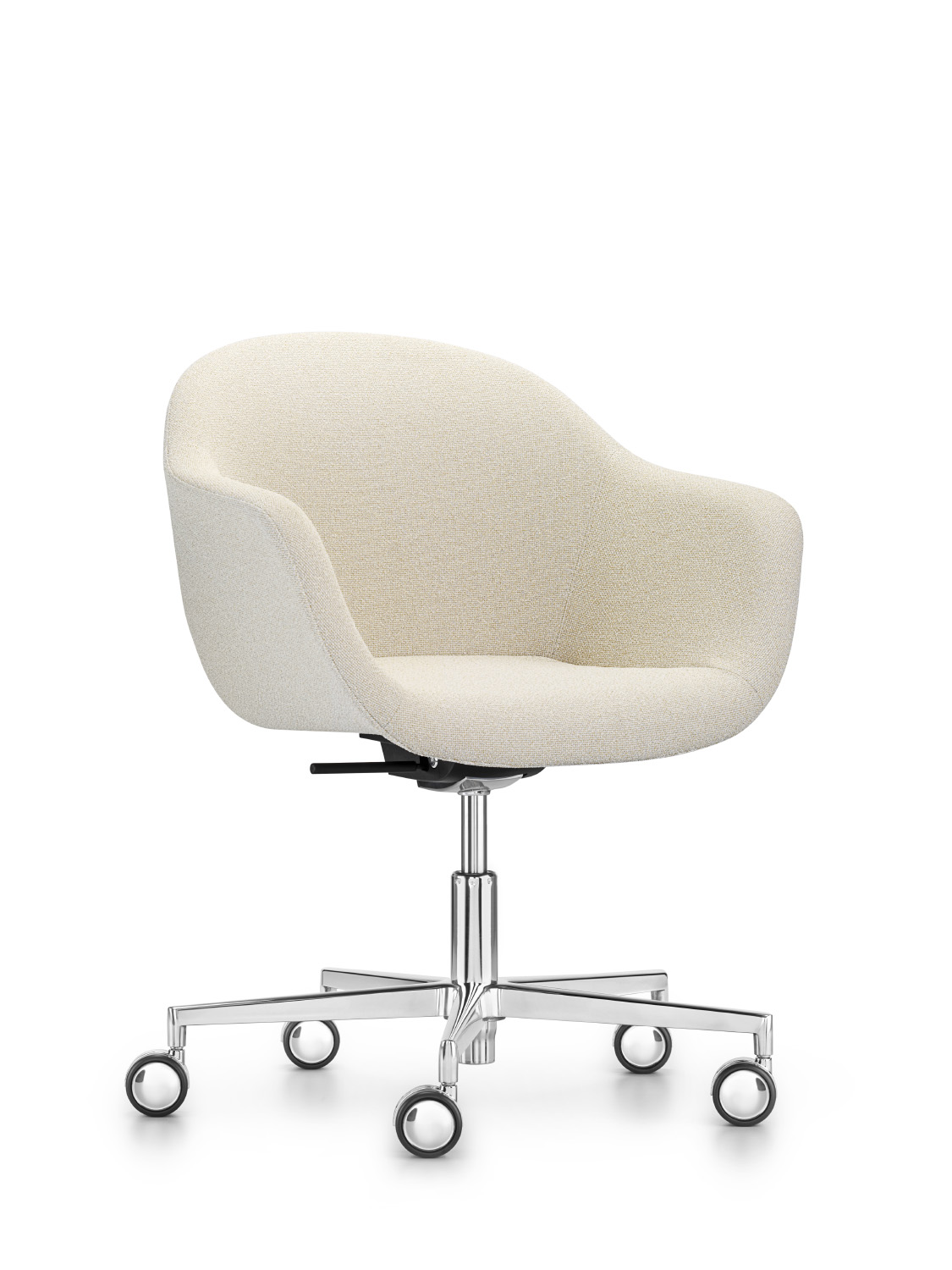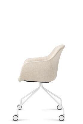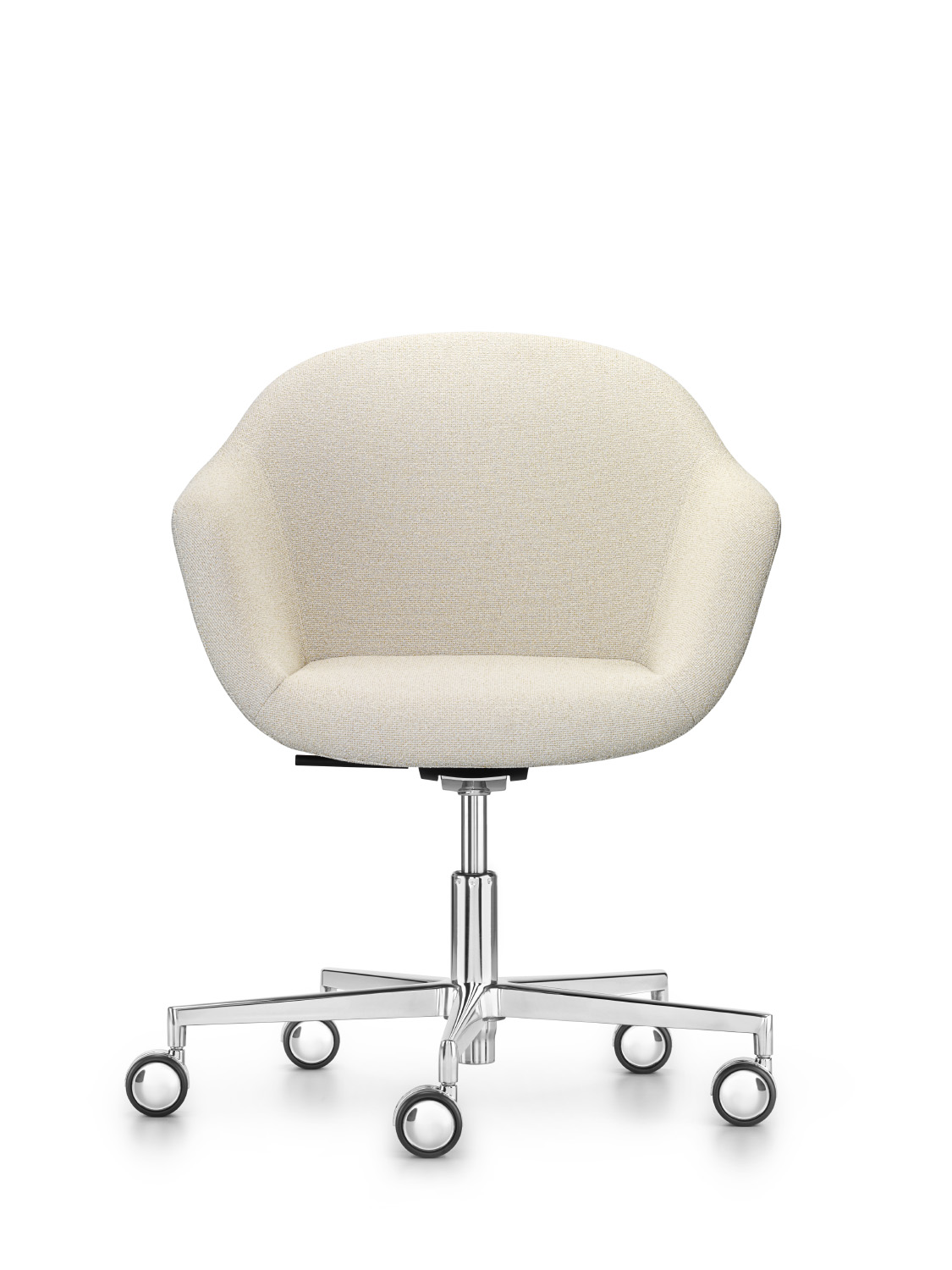 Elegant steel frame, colourful aluminum legs or better mobile on castors? Combine the different frame variants with the organically shaped, extremely comfortable fully upholstered shell!