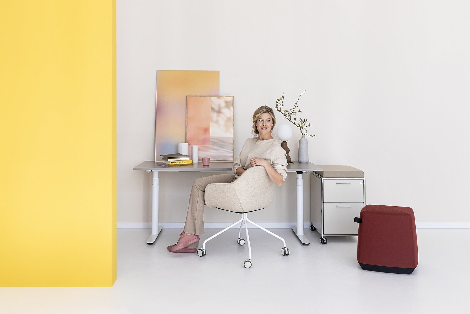 Maximum comfort in the home office: The design with a four-star base and castors adds real flexibility to your home office – and the comfortable seat will always support you.