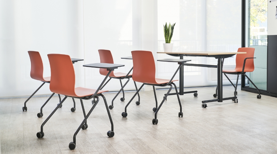 Our versatile project and seminar chairs are the ideal choice wherever flexibility and functionality are needed. Thanks to the practical way in which they can be nested and linked together, hard-wearing materials and their award-winning design, they will fit perfectly into your world of work!