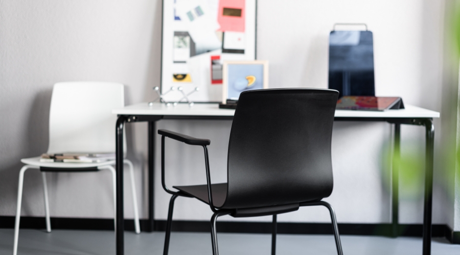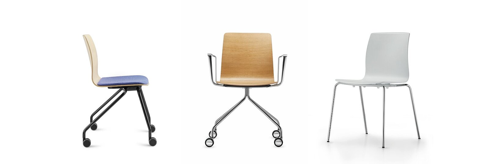 The simple, elegant seat shell gives the chair a light visual touch and, depending on the material and colour, provides bold highlights or makes a fine statement.