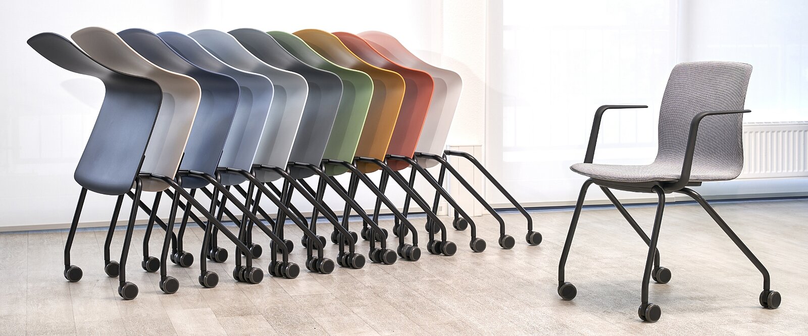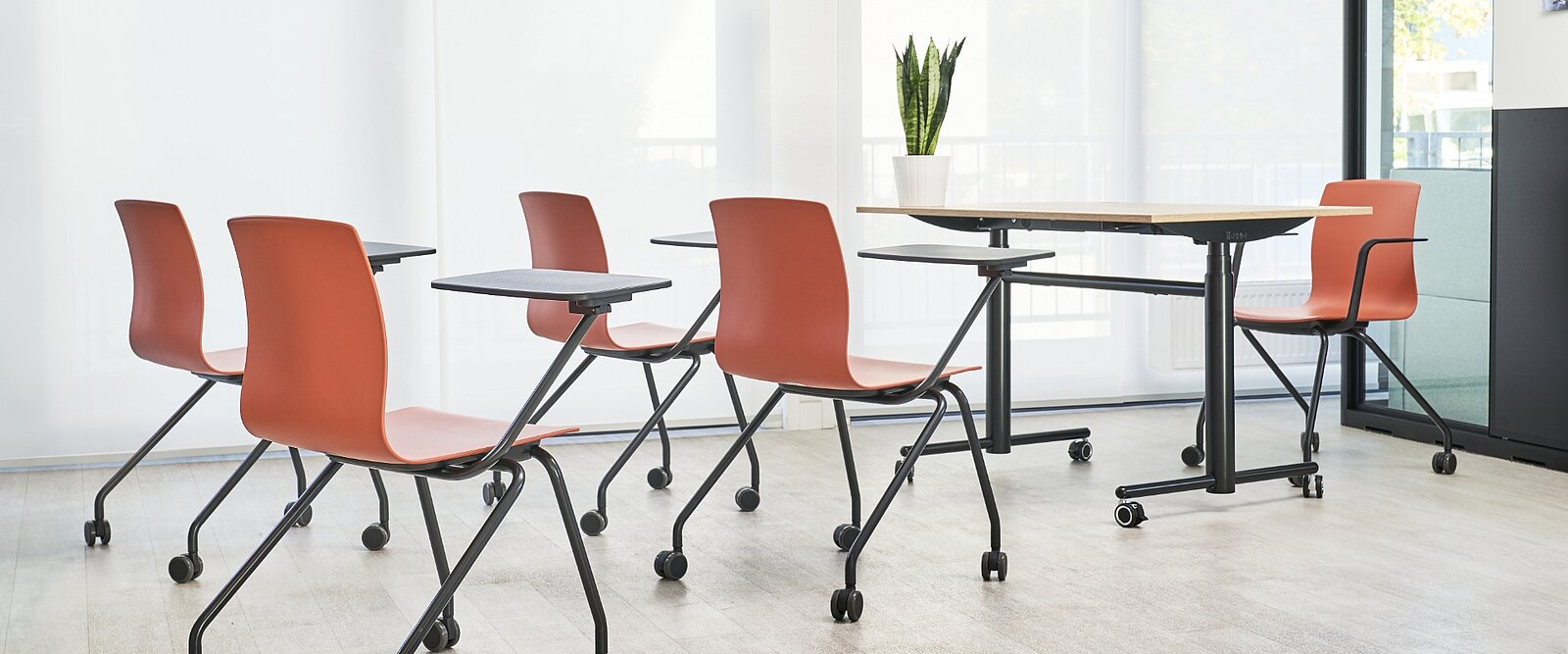 New Work requires flexible structures. Fiore nesting chairs and tables are your versatile partners for agile projects – smart and functional, mobile on wheels, and space-saving when stacked.