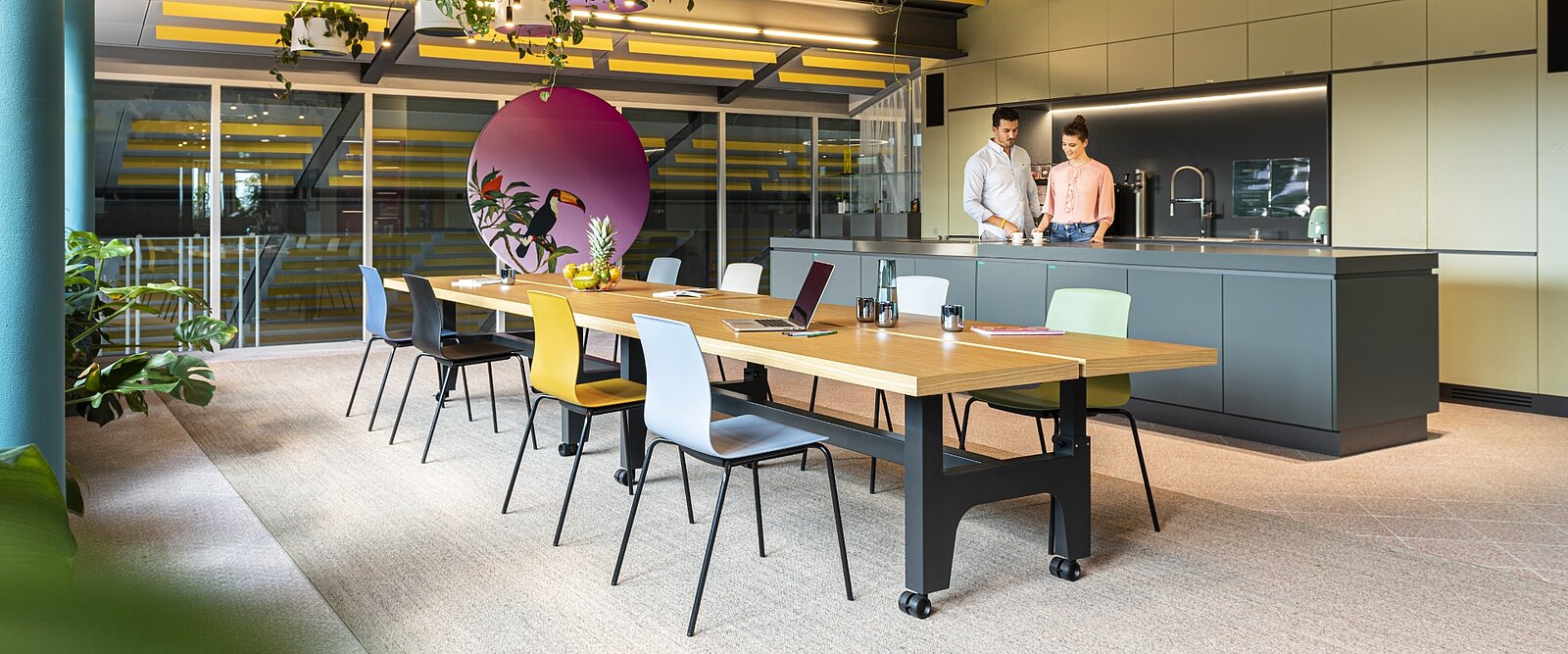 Let’s meet! In addition to the traditional meeting areas, in the modern world of work breaktime areas, reception areas, canteen areas or central areas are also used as places for brief exchanges between colleagues and daily work.